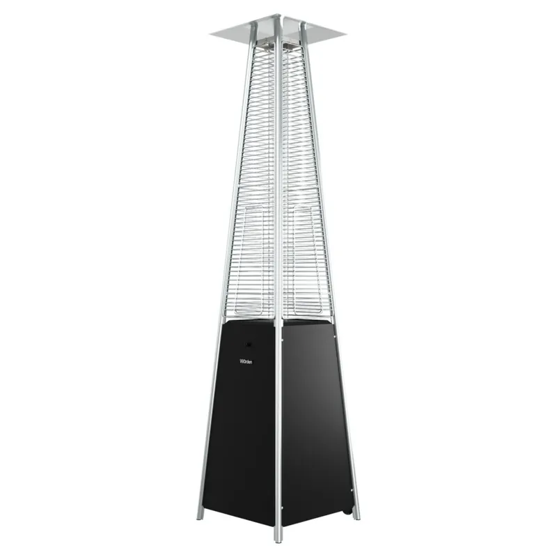 Calentador estilo pirámide a gas, moderno y decorativo. Ideal para eventos al aire libre, brinda calor y ambientación elegante y funcional.