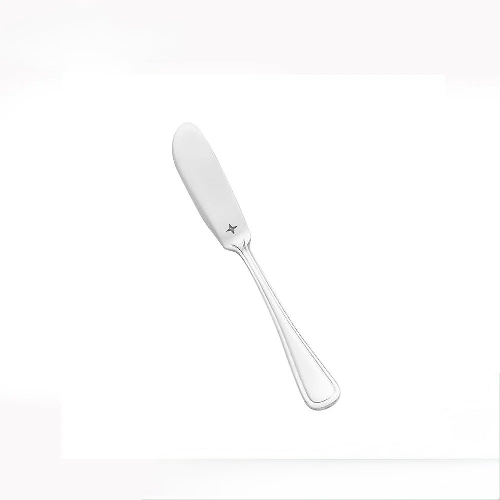 Cuchillo de mantequilla nacional en acero, pequeño y funcional. Ideal para untar con facilidad en eventos con servicio de pan, brunch o entradas.