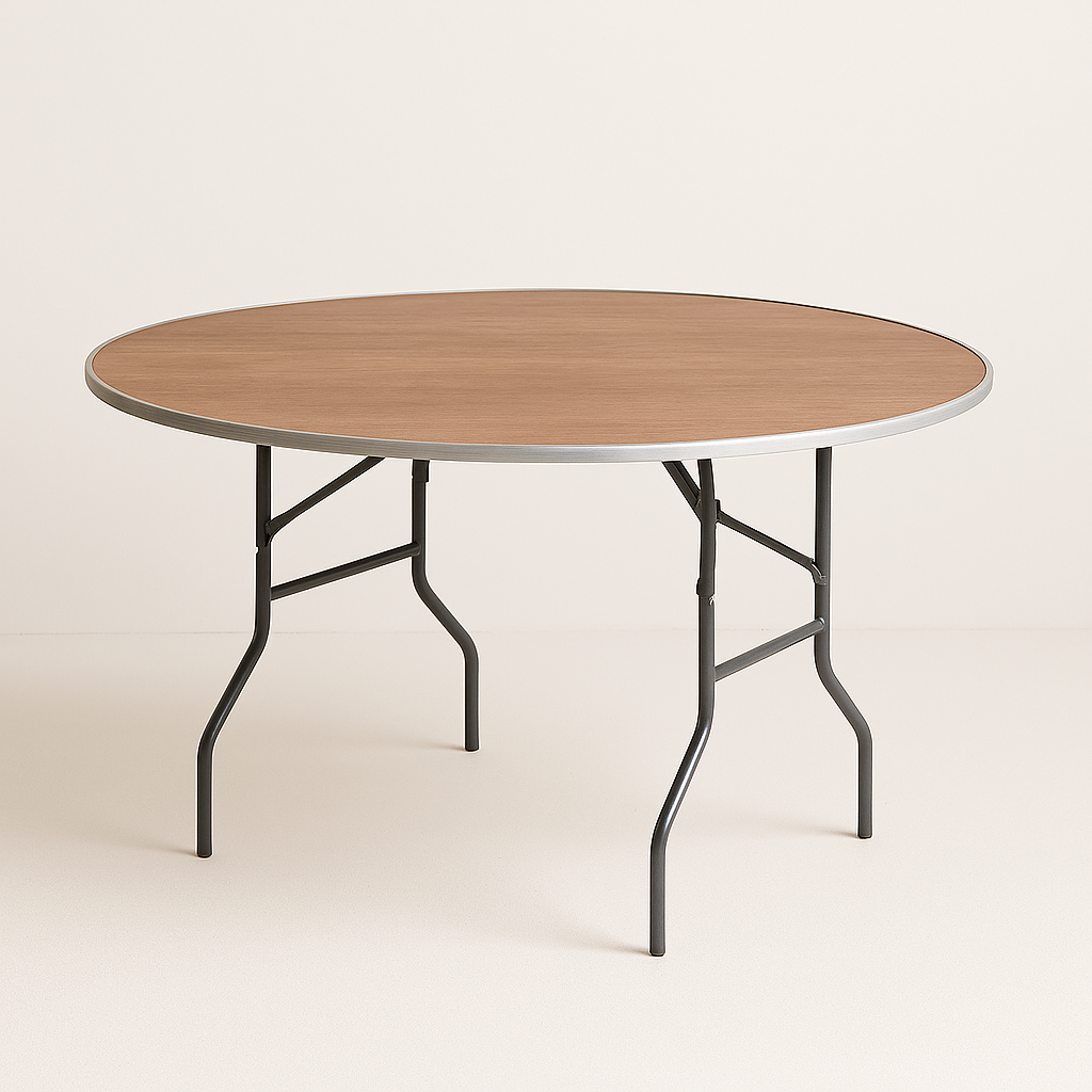 Mesa redonda grande, ideal para eventos formales o familiares. Ofrece amplitud y comodidad, perfecta para crear montajes elegantes y funcionales.