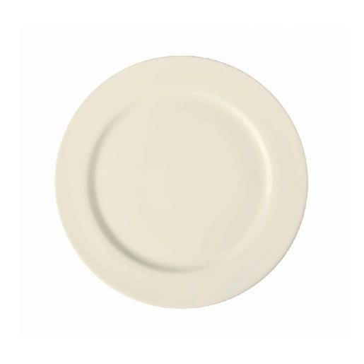 Plato redondo de 27 cm, ideal para platos fuertes. Elegante y funcional, perfecto para eventos formales con presentación cuidada y estilo refinado.