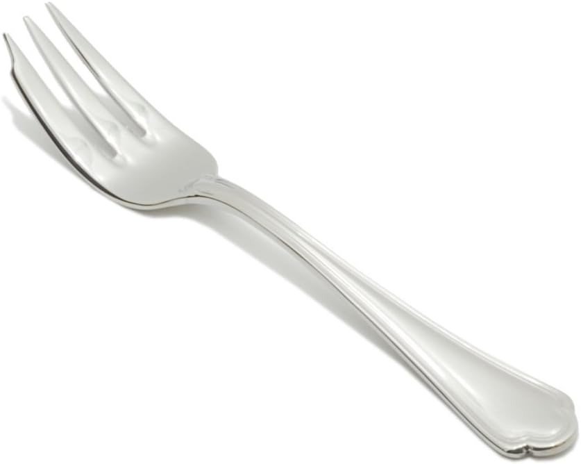 Tenedor postre importado en acero fino, elegante y delicado. Ideal para servir postres con estilo en eventos formales o celebraciones especiales.